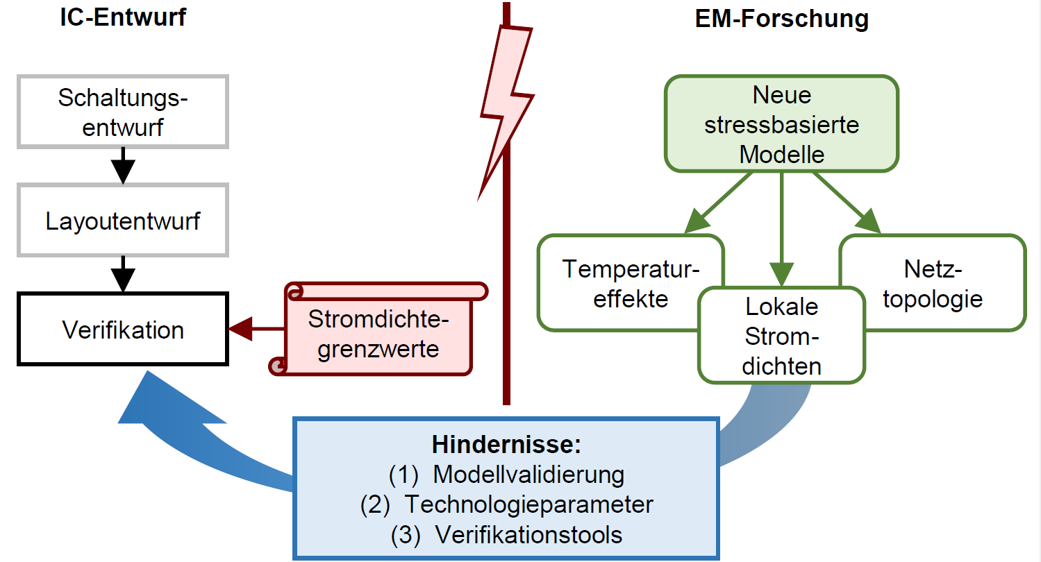 - Entwicklung von effektiven Stromdichte- und Stress-Verifikationsmethoden für Leiterbahnen und Vias unterschiedlichster Geometrien